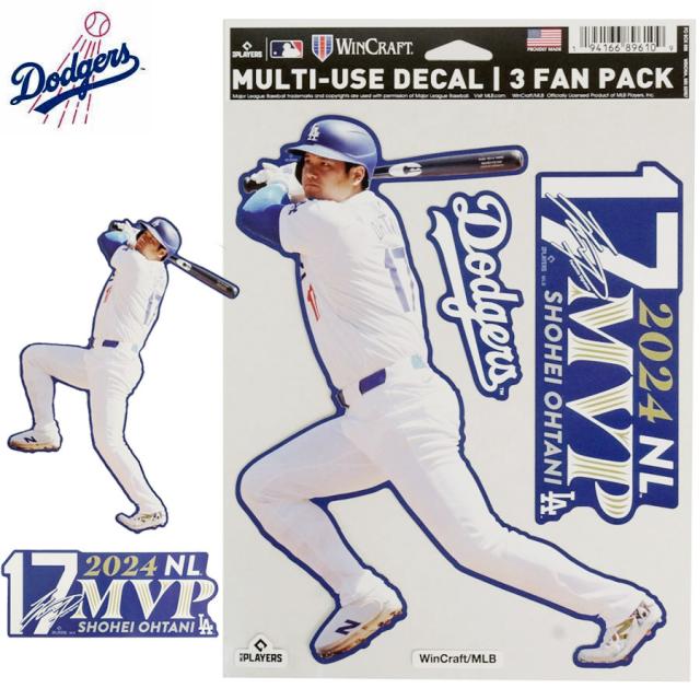 ロサンゼルス ドジャース 公式グッズ定形外郵便対応可WIN CRAFT 大谷翔平 MVP ステッカー 3枚セット オフィシャル シールMULTI USE DECAL 3 FAN PACKLA DODGERS ロサンゼルス ドジャースブルー ホワイト MLB 5050 17 背番号 青