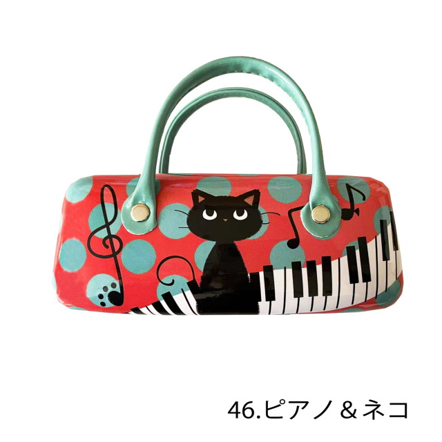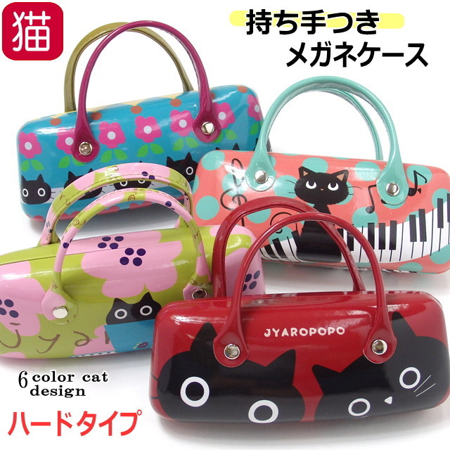 メガネケース ハード ハンドル付 持ち手付 バッグ型 眼鏡ケース めがねケース ネコ柄 かわいい キャラクター 黒猫 ポーチ 小物入れ おしゃれ ネコグッズ 猫雑貨 猫好き ギフト プレゼント 【 誕生日 】