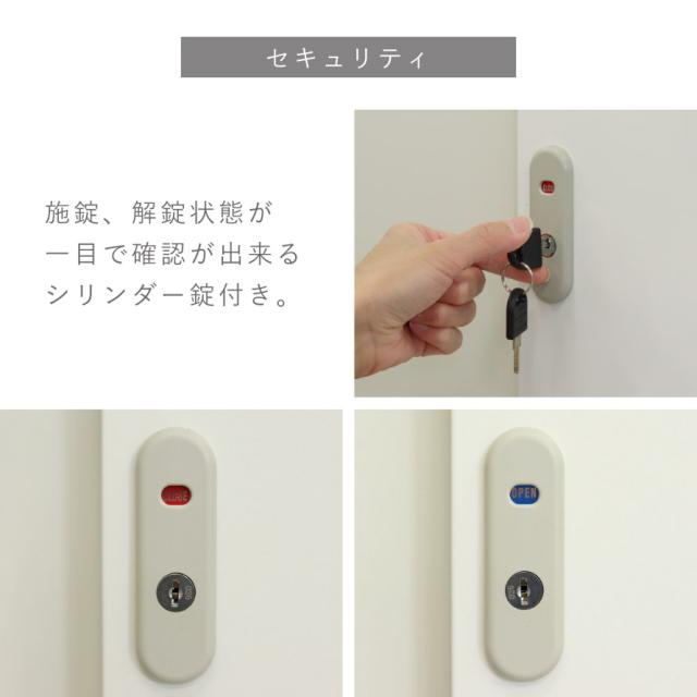 シリンダー錠付きで安心。施錠、解錠状態が一目で確認が出来ます。