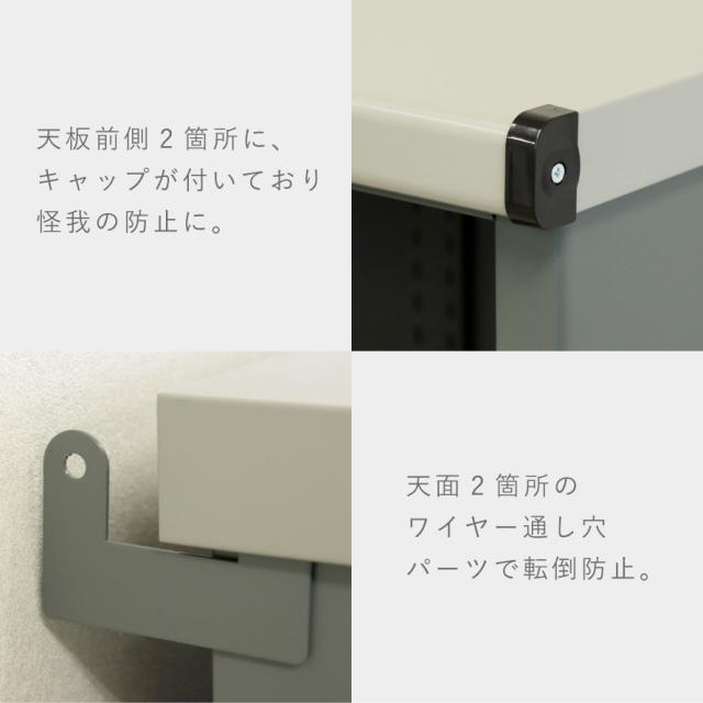 天面左右2箇所にはワイヤー通し穴パーツが、左右底面部にはアンカー固定用パーツが付属しており、転倒防止対策が施されています。