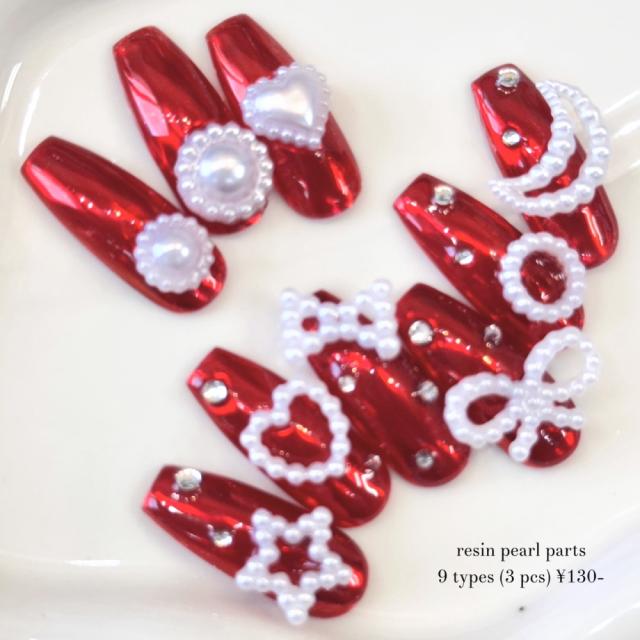 ラローナ [ LALONA ]樹脂パールパーツ ( 3個入 ) ジェルネイル/ネイルアート/リボン/ムーン/ハート/韓国ネイル