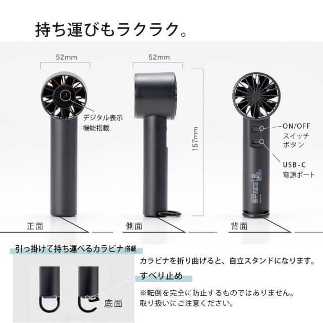 ミニ ハンディ ファン 充電式 扇風機 携帯用 小型扇風機 カラビナ LEDディスプレイ 手持ち扇風 コンパクト 旅行 出張 通勤 2025年モデル カーキ ライトグレー ダークグレー SF-HF25KK SF-HF25LG SF-HF25DG【トップランド 公式ショップ】