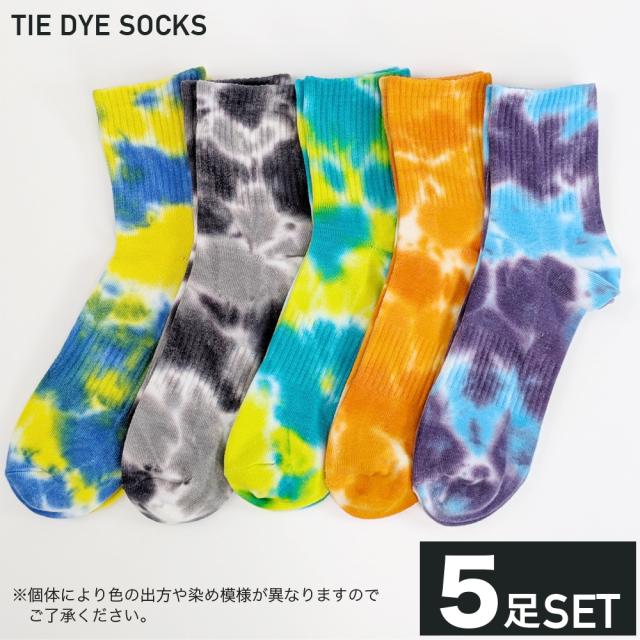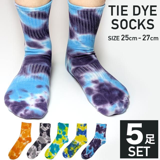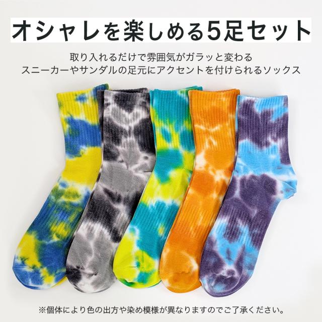 靴下 メンズ 5足セット タイダイ染め 絞り染め ハーフ丈 ミドル丈 ソックス オシャレ かっこいい 25-27cm 10代 20代 30代 40代 50代 25cm 25.5cm 26cm 26.5cm 27cm