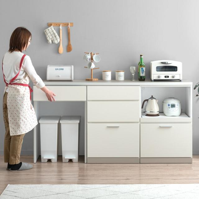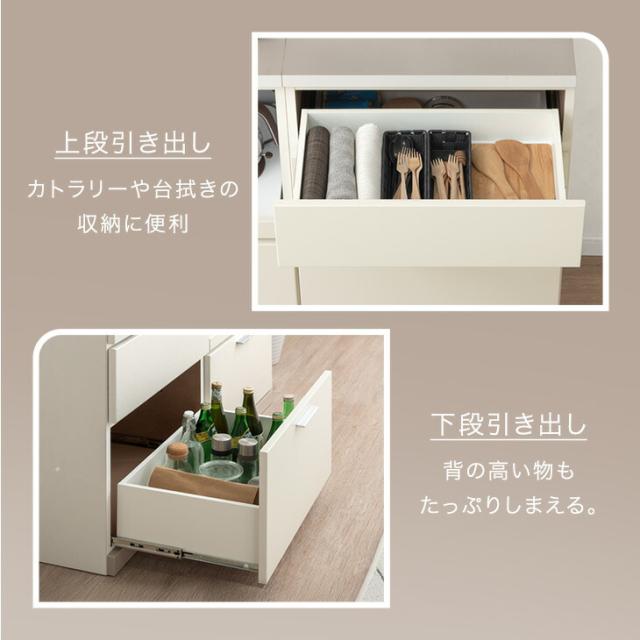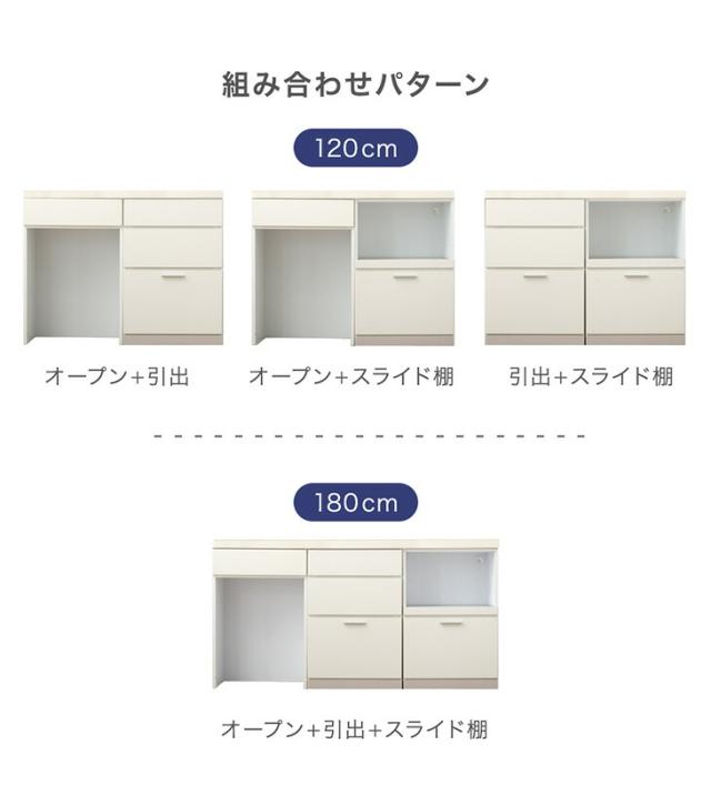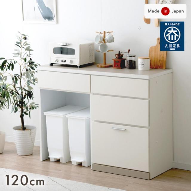 日本製 キッチンカウンター 幅 120cm 高さ 90 食器棚 レンジボード スライド キッチンボード レンジ台 ダイニングボード 扉収納 収納 ロータイプ 木製 ホワイト 北欧 大川家具