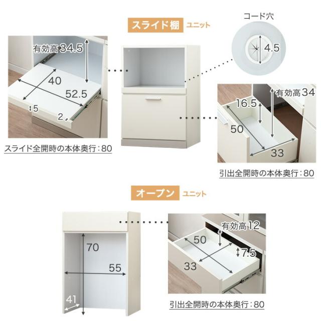L蓋付き家電の収納にぴったりなスライド棚ユニット