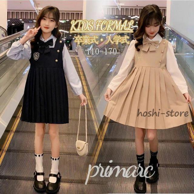 入学式 発表会 女の子 入学式 ワンピース シャツ ピアノ発表会 リボン付き 制服 子供服 七五三 女の子 ガールズ キッズ スーツ 卒