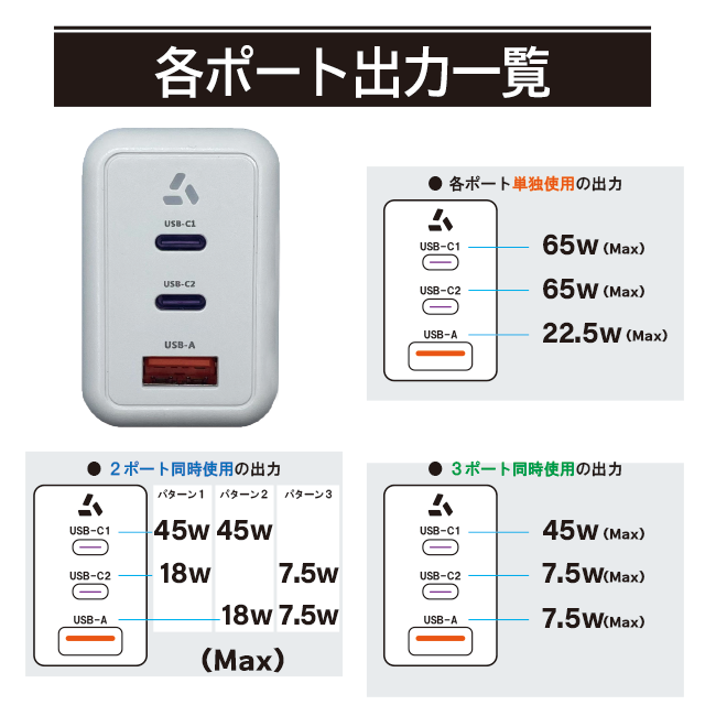【 出力 】 USB-A 22.5A(Max)