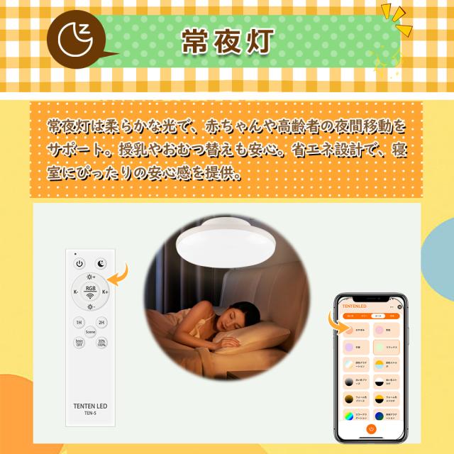 ☆やさしい光で包み込む、常夜灯モード搭載☆