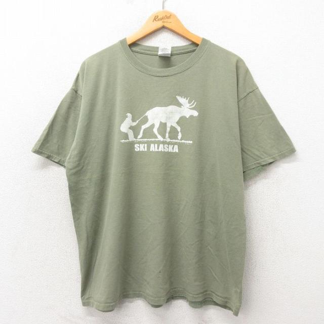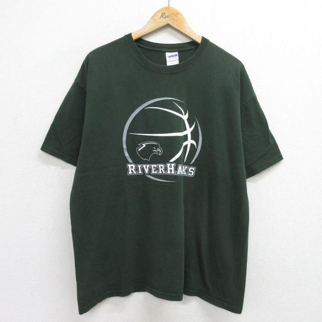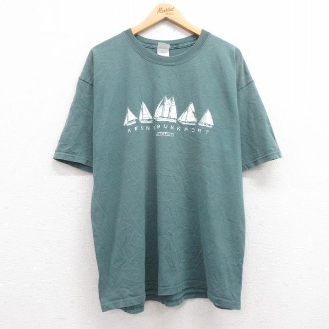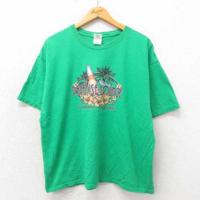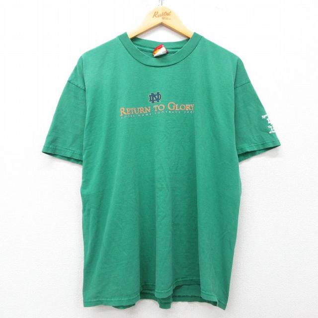 古着 半袖 ビンテージ Tシャツ メンズ 00年代 00s SHENENDEHOWA バレーボール 大きいサイズ コットン クルーネック 緑 グリー 中古 古着