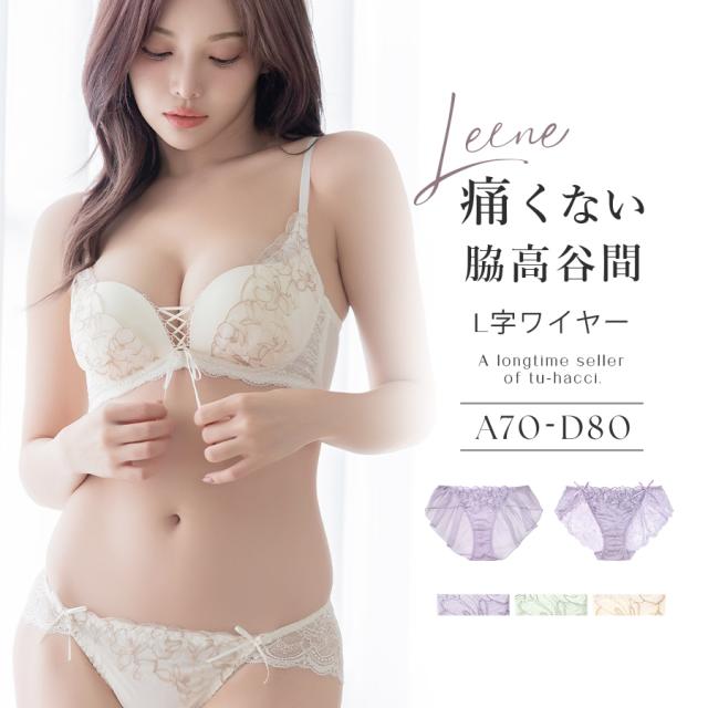 ブラ&ショーツ / 計2点セット 痛くない脇高谷間ブラ 〜Leene(リーネ)シリーズ〜 脇高設計でシルエットを整えつつ、ストレスフリーな谷間メイクを叶える補正ブラ。 マグノリアをイメージした繊細な刺繍レースが織りなすのは、花々が咲きこぼれる上品でロマンティックな胸元。 フロントのレースアップをアクセントに添えて。 ≫ ギフトラッピングもご用意しています≪ | |