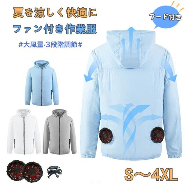 空調作業服 空調ジャケット ファン付き 作業服 フード付き ワークマン 長袖 空調ウェア ファン服 エアコン服 大風量 薄型 清涼服 夏用 父の日 扇風服 アウトドア UVカット 夏熱中症対策
