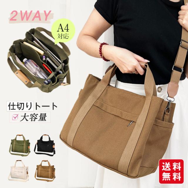 春新作 トートバッグ キャンバス 3way レディース キャンバスバッグ 大容量 ショルダーバッグ 手提げ 大きめ ファスナー付き 通勤 通学 ザーズバッグ お散歩 キャンバス生地 仕切り 整理整頓 帆布 ポイント消化