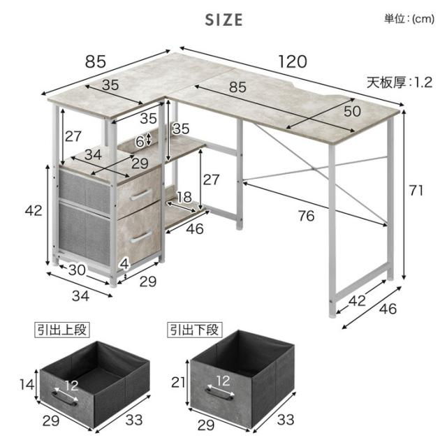 収納付き l字デスク 120 引き出し l字 L字デスク 左右反転 棚 ラック 作業机 コーナー デスク L字型 pcデスク 在宅ワーク 在宅勤務 テレワーク コンパクト ホワイト ブラック シンプル