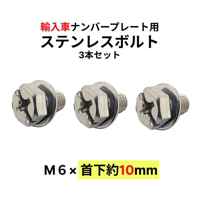 輸入車ナンバープレート用ステンレスボルト 1袋【3本入】M6×首下約10mm ライト精機 ねじ ネジ 封緘 自動車 輸入車 アメリカ車 ドイツ車 ボルト ネジ山 腐食 錆びにくい 交換 ナンバープレート ステンレス