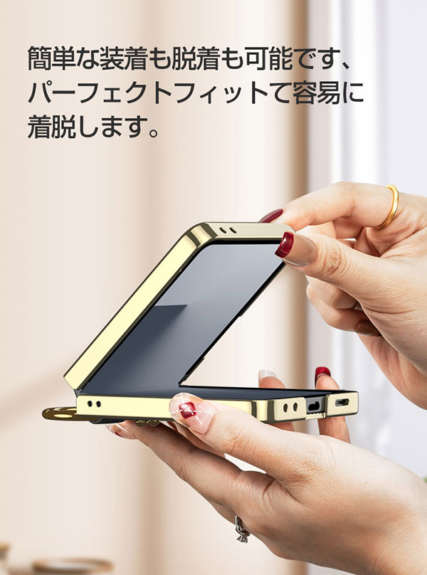 Samsung Galaxy Z Flip7 ケース 耐衝撃 カバー メッキ 折りたたみ型 スマホアクセサリー PC&強化ガラス&PUレザー 衝撃吸収 CASE 軽量 持ちやすい 実用 ストラップホール付き リング付き 人気 おすすめ おしゃれ サムスン ギャラクシー Z フリップ7 ケース 背面カバー