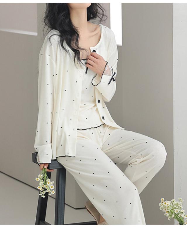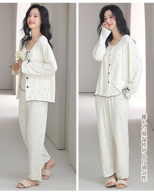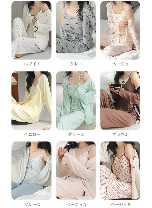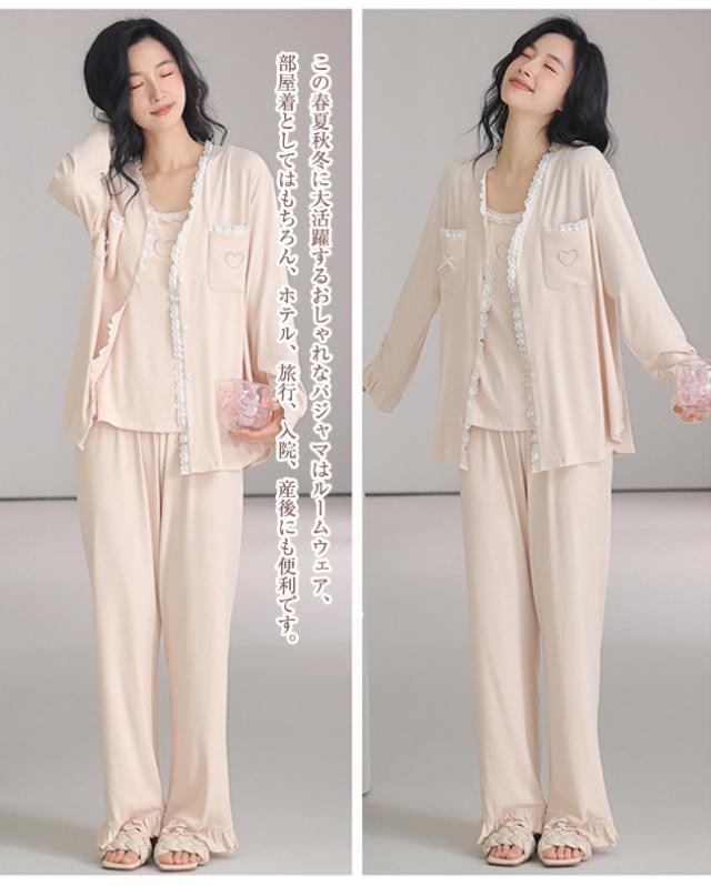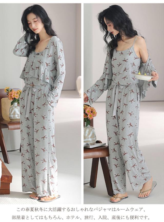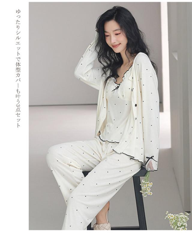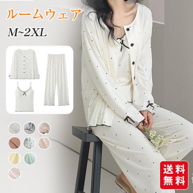 【 5% オフクーポン】新作 ルームウェア レディース カップ付き 3点セット パジャマ 寝巻き 部屋着 長袖 長パンツ パンツ ズボン キャミソール 上下セット セットアップ 通気性 可愛い