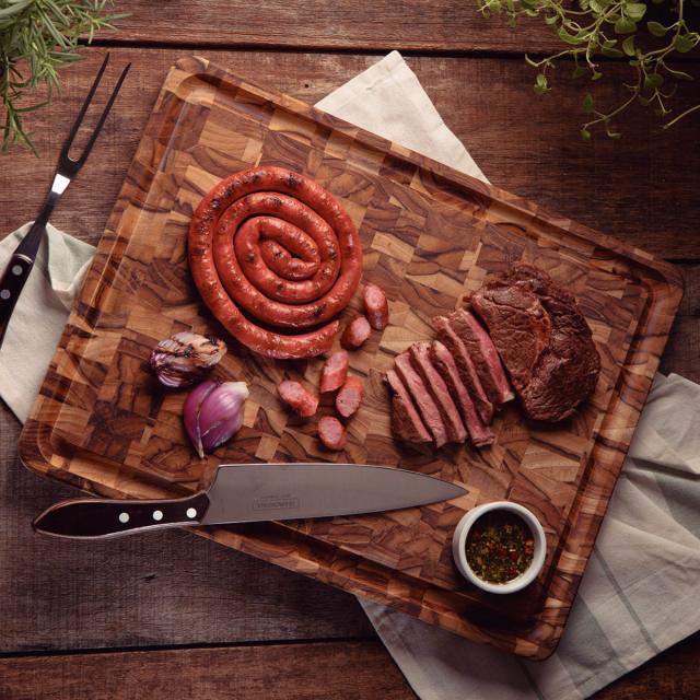 高級木材のブラジリアンチークを使用した木製まな板です。ブラジル北部のアマゾン流域の街「ベレン」で採取される様々な木々が使われており、自然で優しい色合いです。アウトドア、バーベキュー、家族や友人との食事など幅広いシーンで活躍します。