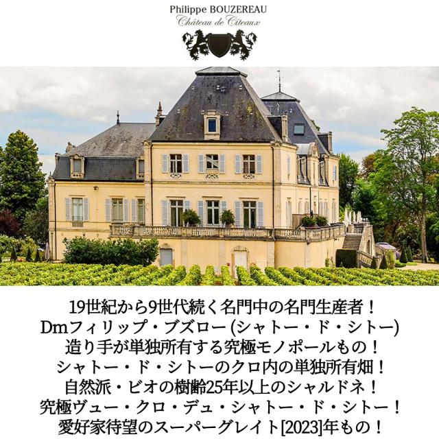 19世紀から9世代続く名門中の名門生産者!Dmフィリップ・ブズロー (シャトー・ド・シトー) 造り手が単独所有する究極モノポールもの!シャトー・ド・シトーのクロ内の単独所有畑!自然派・ビオの樹齢25年以上のシャルドネ!究極ヴュー・クロ・デュ・シャトー・ド・シトー!愛好家待望のスーパーグレイト[2023]年もの!
