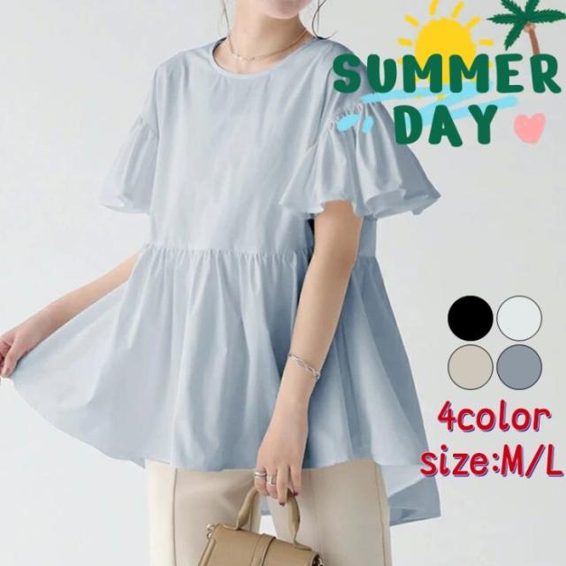 Tシャツ レディース トップス 半袖 チュニック シャツ ブラウス 無地 カジュアル おしゃれ 夏新作