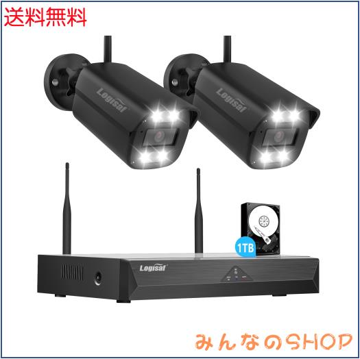 防犯カメラ 屋外 ワイヤレス Logisaf 24時間録画 300万画素 防犯カメラセット 2台 10台増設 wifi 監視カメラ 屋外 夜間カラー撮影 動体検