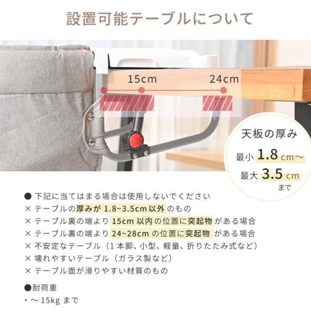 取り付け可能テーブル 厚み:1.8〜3.5cm