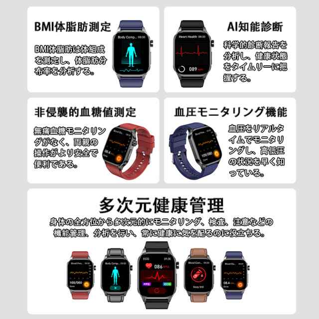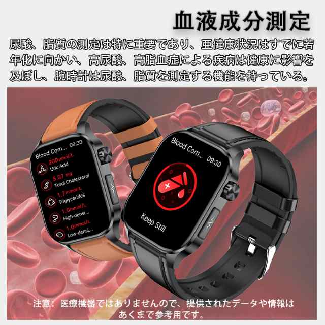 即日発送 スマートウォッチ 血糖値 心電図 血圧測定 血液成分分析 尿酸 血中脂質 BMI 心拍数 睡眠検測 血中酸素 体温監視 睡眠 呼吸訓練 女性生理管理 リモートケア 着信通知 iphone Android対応 腕時計 日本製 母の日 敬老の日 プレゼント