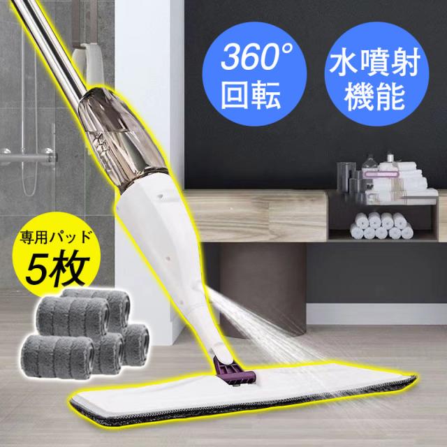 モップ 水拭き スプレーモップ パッド5枚 おしゃれ 水が出る 軽量 軽い フロアモップ スプレーワイパー 床 窓 掃除