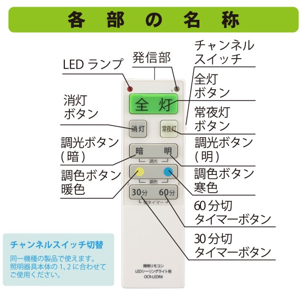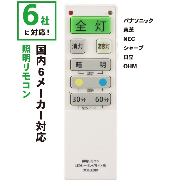 オーム電機 LEDシーリングライト用リモコン (国内6社メーカーに対応) OCR-LEDR4