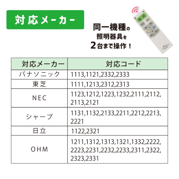 LEDシーリングライト専用照明リモコン 国内6メーカー対応 調光機能対応