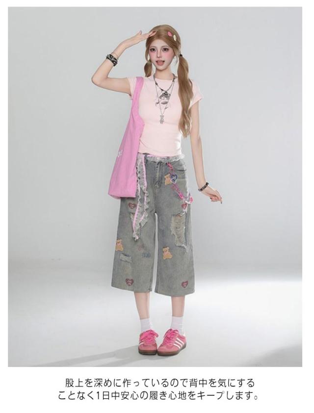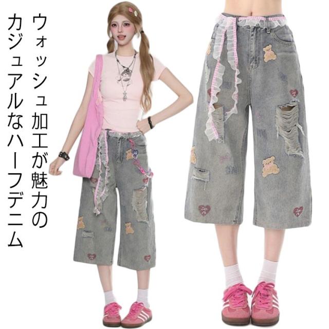 7分丈 涼しい ハイウェスト ウェストゴム レディース イージーパンツ おしゃれ 夏 大人 薄手 ゆるパンツ 春 デニムパンツ ガウチョパンツ パンツ ワイドパンツ カジュアル ジーンズ カジュアル 7分丈 アメリカン ヴィンテージ ストリート系 大きいサイズ