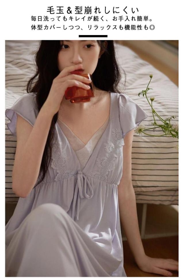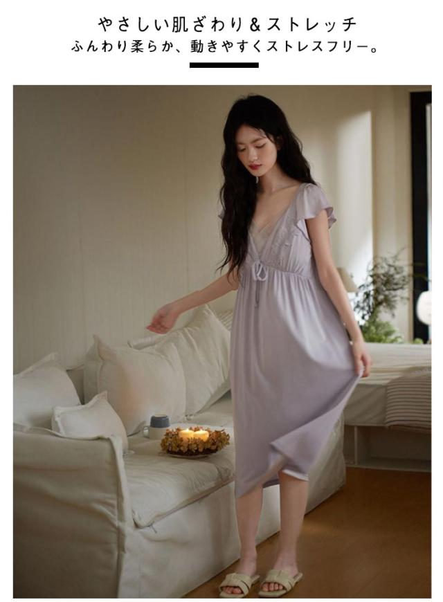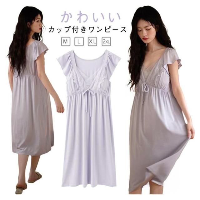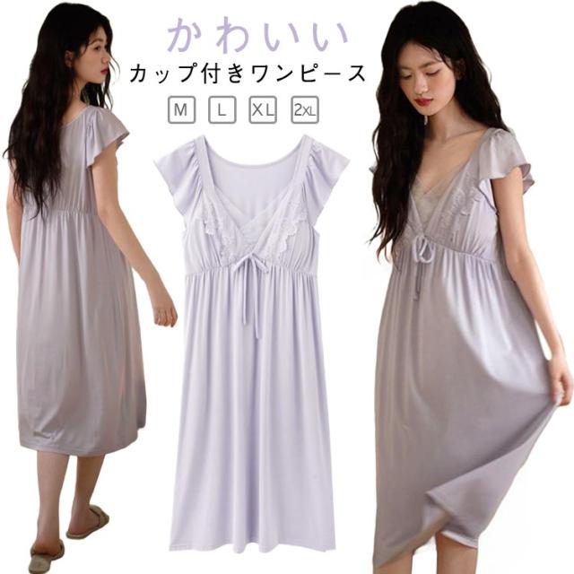 夏 モーダル カップ付き 部屋着 カップ付きワンピース パット付き トラベルパジャマ 薄手 パジャマ ワンピース ワンピ 半袖 綿 春夏用 レディース かわいい ミドル丈ワンピース ネグリジェ コットン 膝丈 ルームウェア 寝巻き ミドル丈ワンピース