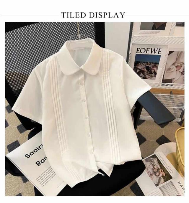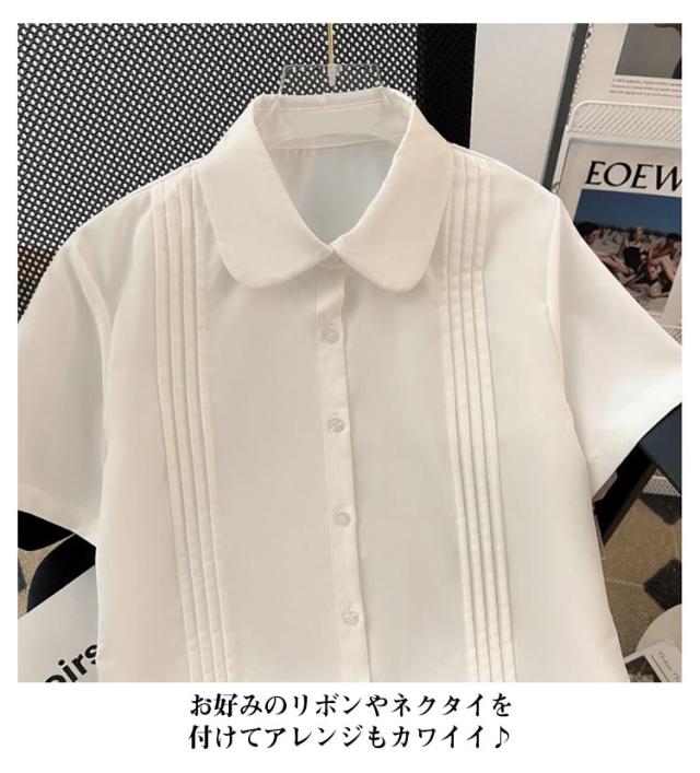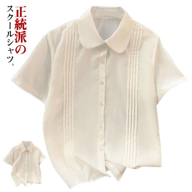 スクールシャツ 半袖 学生服 女子 中学 ピンタック ブラウス 学生 お洒落 丸襟 レギュラカラー スクールシャツ 高校 スクール 通学 ガールズ 学生 女子高生 制服 JK制服 白 ホワイト カジュアル