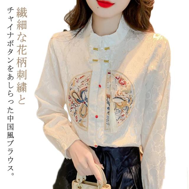 チャイナボタン チャイナ服 上品 花柄 長袖 レディース シャツ トップス チャイナ風 刺繍 チャイナシャツ スタンドカラー 春 可愛い 中国風 薄手 チャイナ服 シャツブラウス 春夏 シャツ 春服 エレガント カジュアル ブラウス きれいめ フェミニン