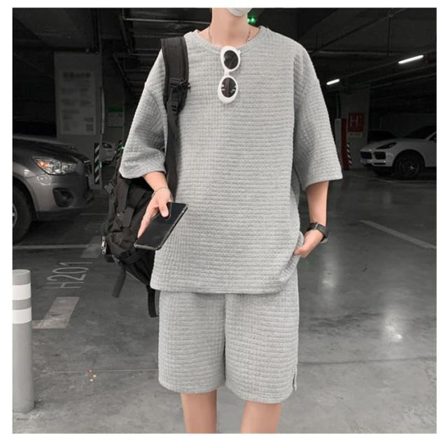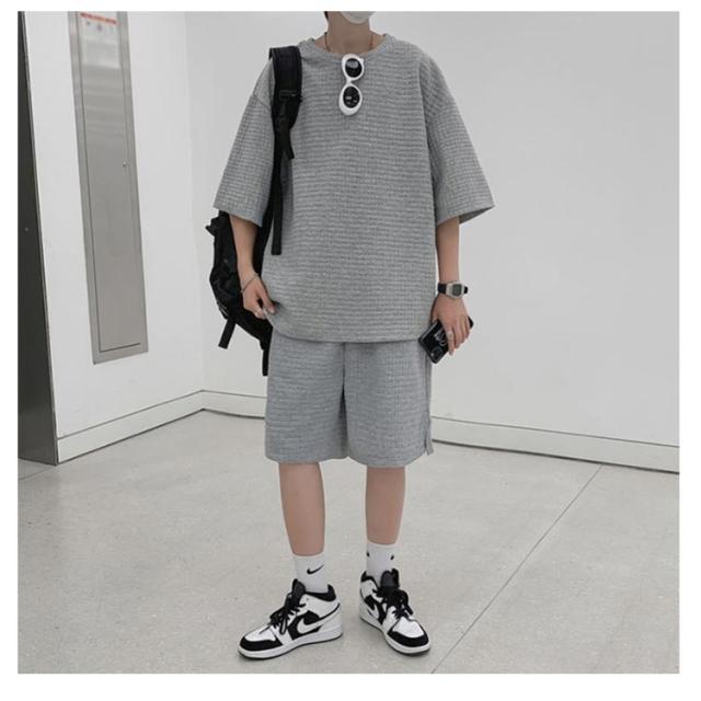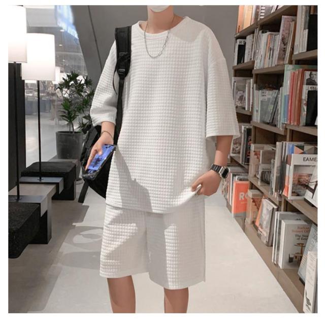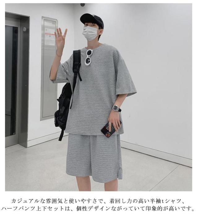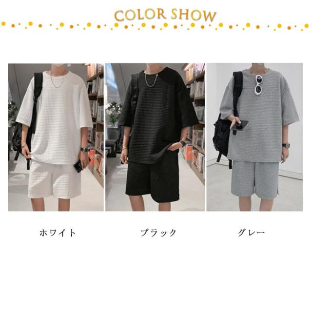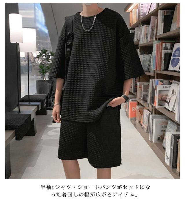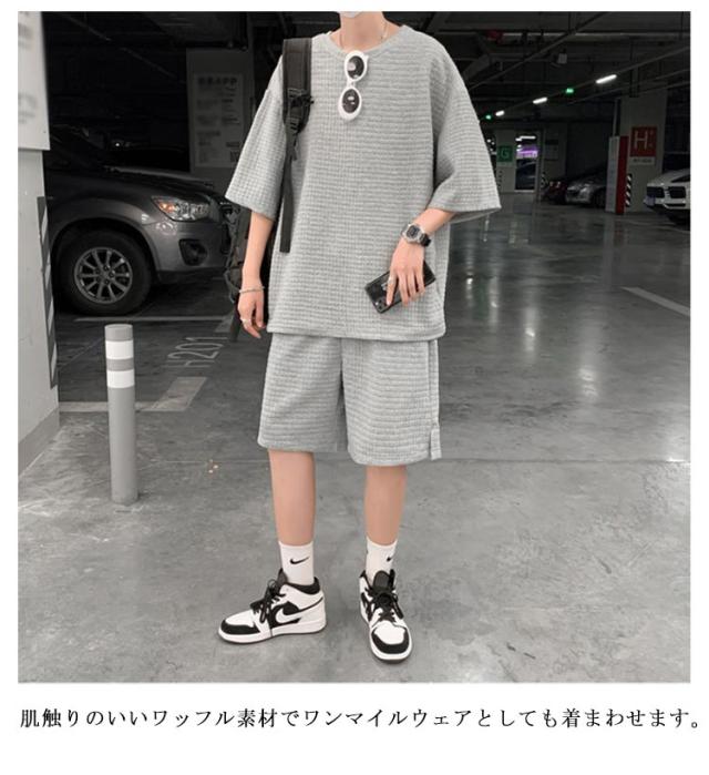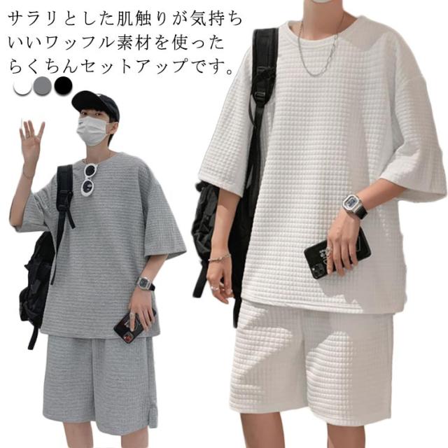 リラックスパンツ ショートパンツ トップス セットアップ ワッフル ワッフル 半ズボン ハーフパンツ メンズ 半袖tシャツ ワイドパンツ ゆったり ジャージ 涼しい 上下セット お出かけ 部屋着 スポーツウェア ルームウェア Tシャツ お洒落 カジュアル リラックス 春 夏