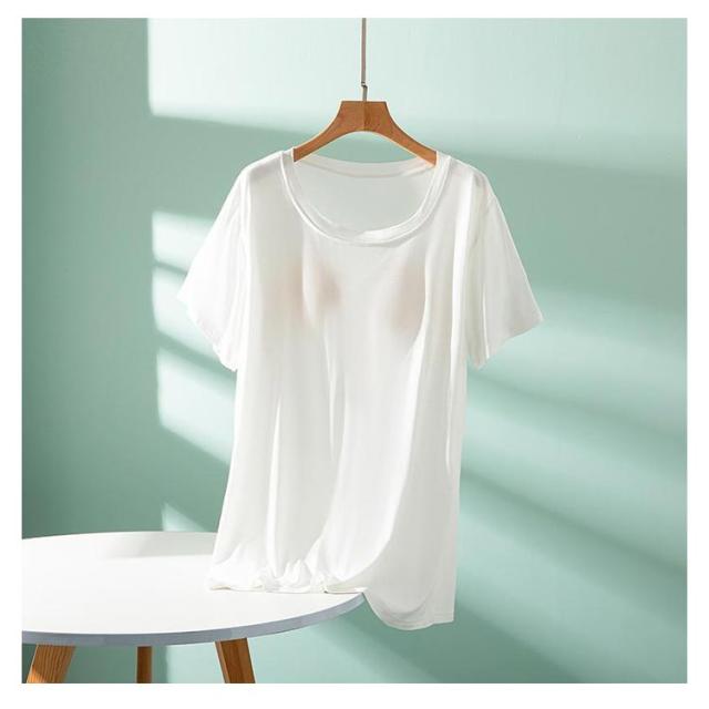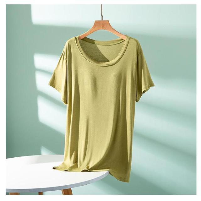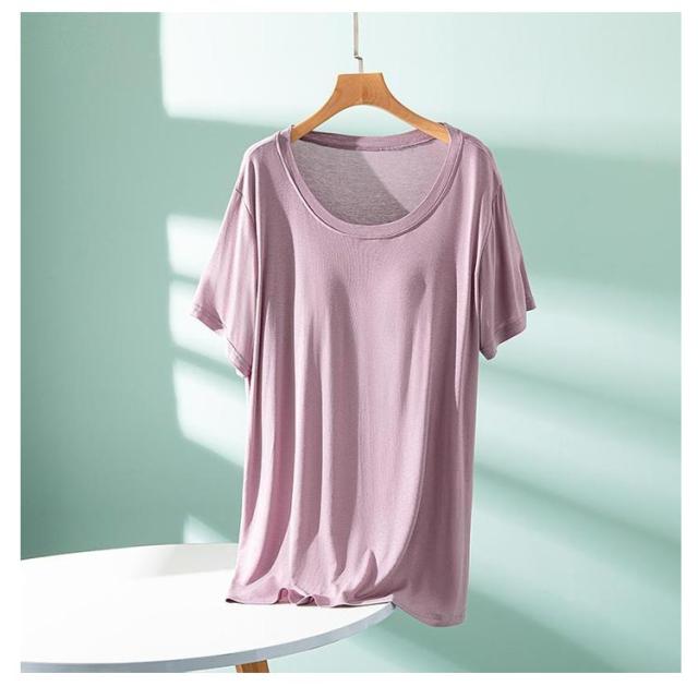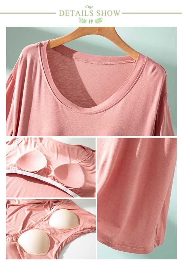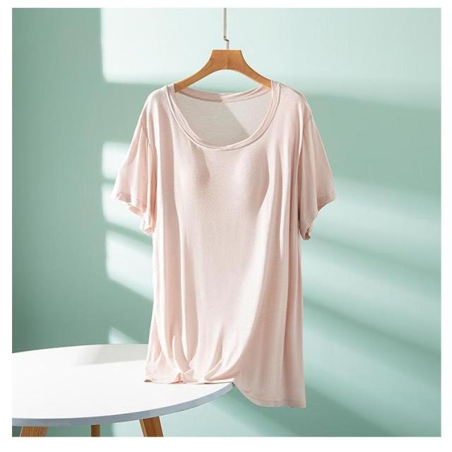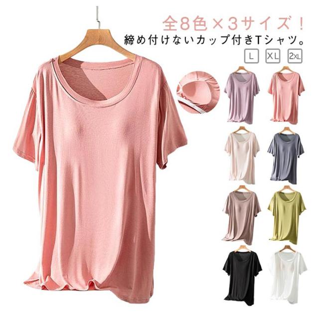 レディース 固定 カップ付きtシャツ 半袖 夏 ブラトップ 吸湿 パット付半袖Tシャツ ルームウェア カップ付きtシャツ ゆったり 無地 大きいサイズ tシャツ ラウンドネック 柔らかい 速乾 モーダル インナー 締め付けない カップ付き ナイトブラ ナイトウェア 部屋着