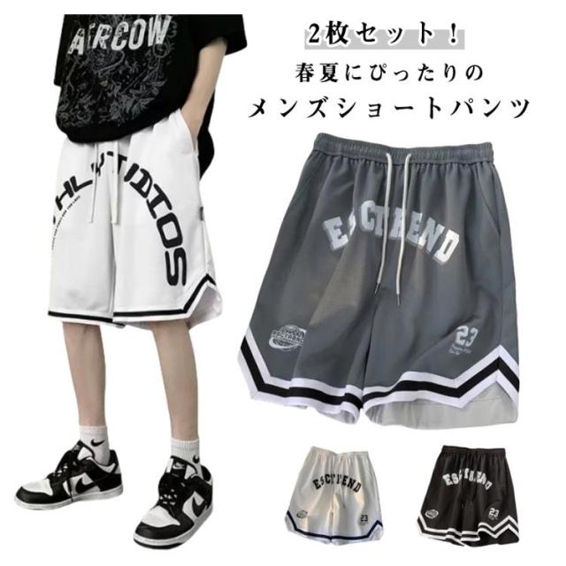 膝上 薄手 短パン ショートパンツ ハーフパンツ メンズ スポーツ 2枚セット 涼しい バスパン バスケットボールパンツ おしゃれ ランニング ゴルフ ゆったり バスケパンツ チームウェア 大きいサイズ バスケパンツ 夏 運動会 トレーニング 通気性 速乾 半ズボン ボトムス