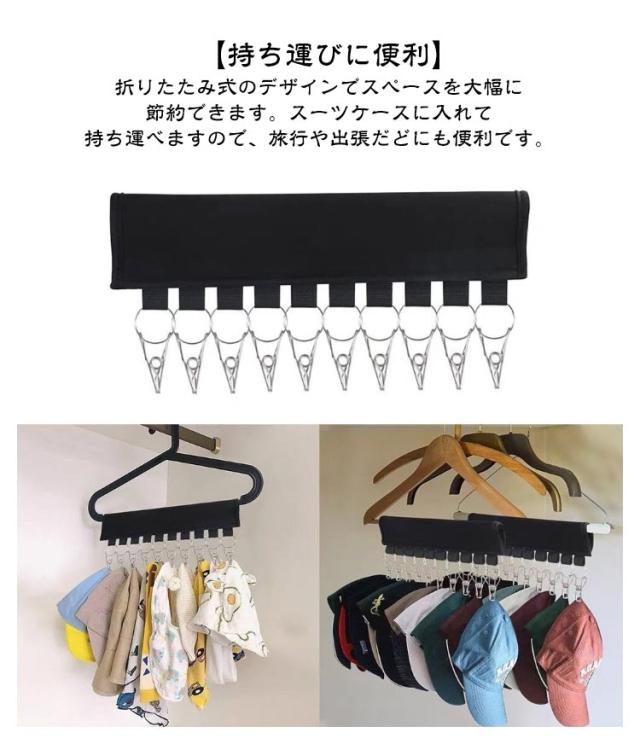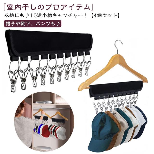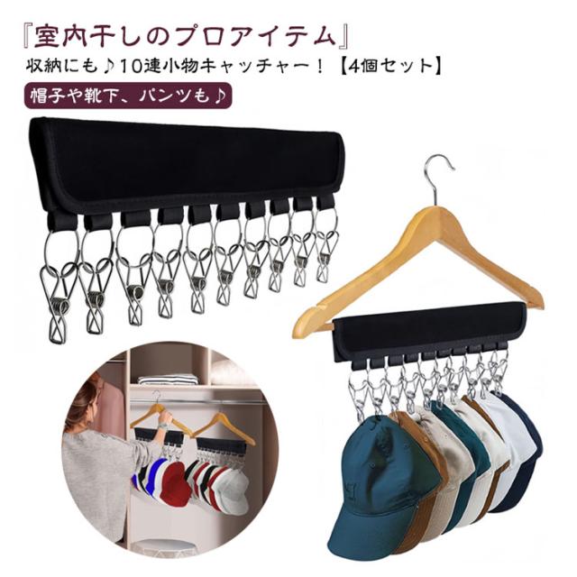 ピンチ 【4個セット】 ハンガー 小物用 帽子掛け 小物収納 【4個セット】 携帯ハンガー 10ピンチ 洗濯ハンガー 帽子ハンガー 洗濯バサミ 折り畳み 帽子収納 クリップ10個付き 布製 野球帽子 キャップホルダー クローゼット キャップ