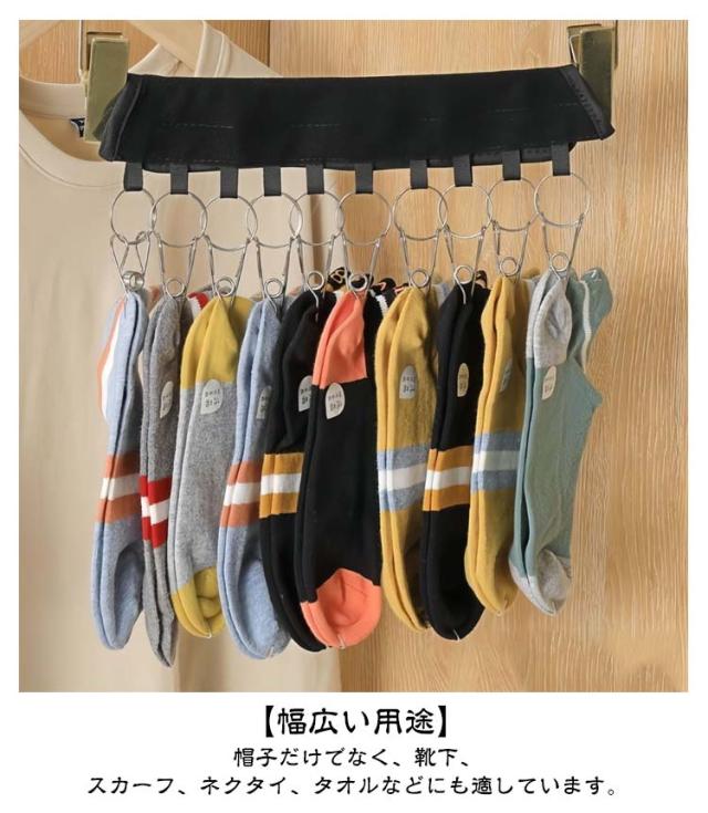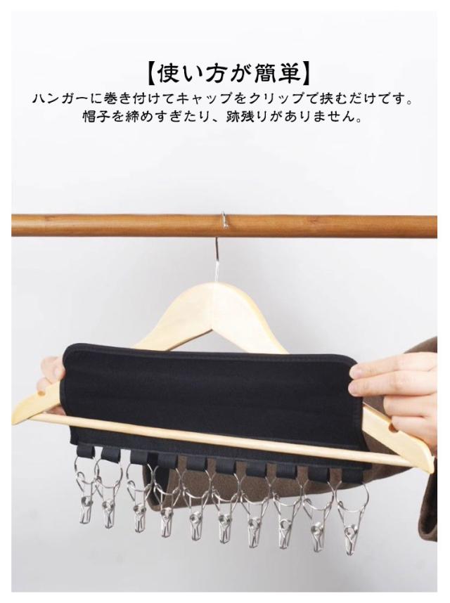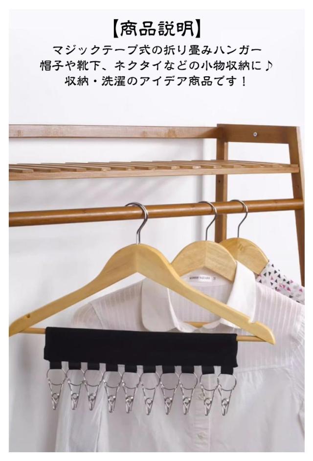 | 『室内干しのプロアイテム』 収納にも♪10連小物キャッチャー!【4個セット】 帽子や靴下、パンツも♪ 【商品説明】 \マジックテープ式の折り畳みハンガー/ 帽子や靴下、ネクタイなどの小物収納に♪ 収納・洗濯のアイデア商品です! 普通のハンガーに引っ掛けるだけで簡単に収納! いつでも帽子や靴下、ネクタイなどの小物を クローゼットに入れておくことができます。 折りたたみ可能ですので出張時や旅行時にも活躍♪ <お勧めポイント> 【大容量】 お気に入りの帽子の形状を失うことなく最大10個のキャップを掛けることができます。 【使い方が簡単】 ハンガーに巻き付けてキャップをクリップで挟むだけです。帽子を締めすぎたり、跡残りがありません。 【持ち運びに便利】 折りたたみ式のデザインでスペースを大幅に節約できます。スーツケースに入れて持ち運べますので、旅行や出張だどにも便利です。 【幅広い用途】 帽子だけでなく、靴下、スカーフ、ネクタイ、タオルなどにも適しています。 | |