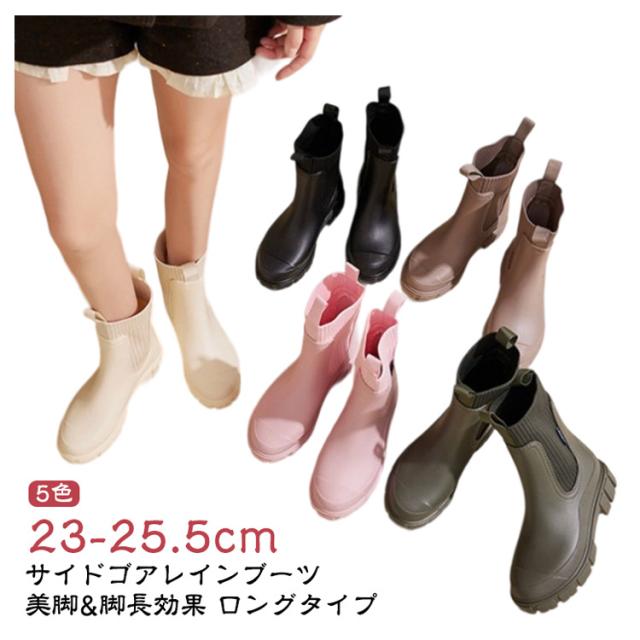 レディース レインシューズ レインブーツ 23.5cm サイドゴア 完全防水 通勤 レディース ガーデニング 長靴 軽量 通学 歩きやすい ブーツ おしゃれ 晴雨兼用 雨対策 履きやすい 【ロングタイプ】 滑らない 蒸れにくい 厚底 台風 23cm 雨靴 24cm 24.5cm 25