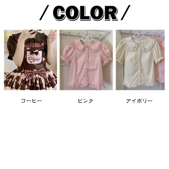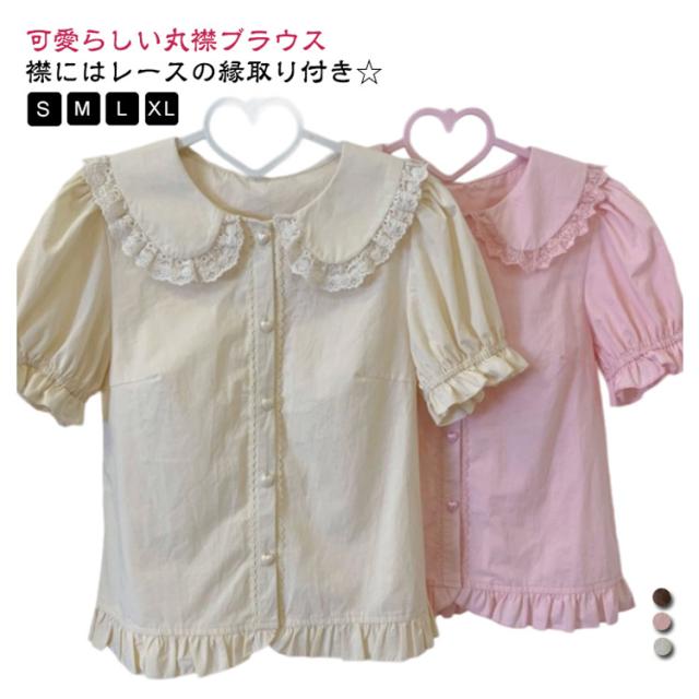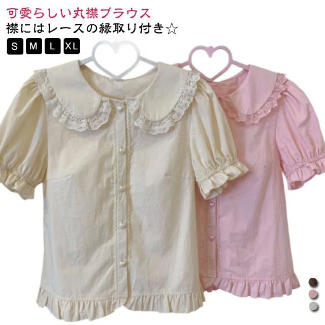 ボリューム袖 パフ袖 夏 サブカル ゴスロリ レディース 病みかわいい ボリューム袖 やみかわ 可愛い シャツ 半袖ブラウス 秋 フリル トップス 半袖 量産型 ロリータ 半袖トップス 半袖シャツ レース カジュアル 春 地雷系 かわいい 綿 重ね着