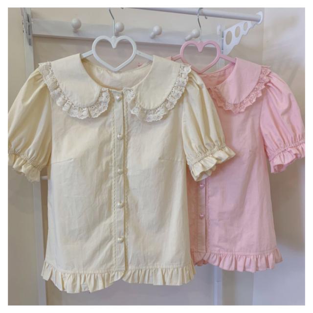 | 可愛らしい丸襟ブラウス 襟にはレースの縁取り付き☆ ゆったりデザインでボリューム袖になっております。 からだにフィットしすぎず、ストレスフリーなサイズ感。 ロリータ、地雷系から量産系コーデまで、様々なコーデにぴったりのアイテムです。 | |