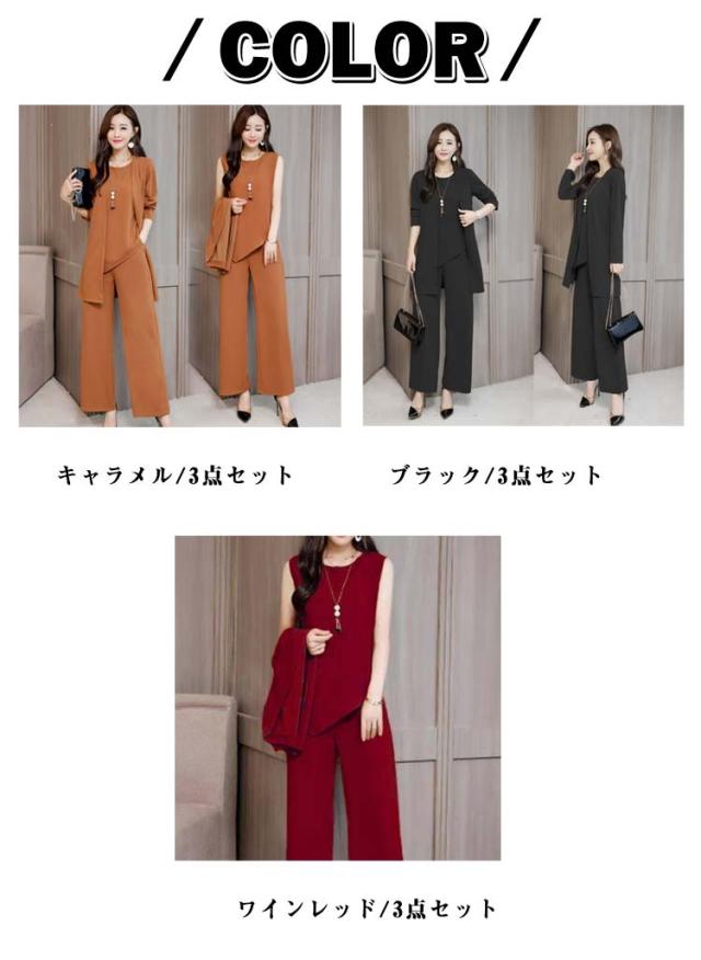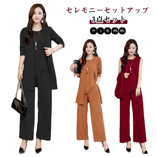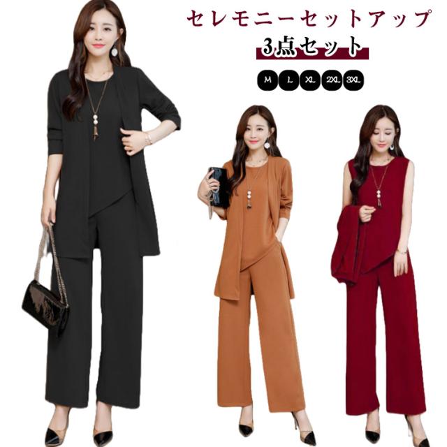 通勤 セレモニー パンツスーツ セレモニー 結婚式 セレモニースーツ 卒園式 3点セット セットアップ 服装 ママ 卒業式 発表会 入学式 入園式 ママスーツ スーツジャケット ワイドパンツ 上下セット 七五三 OL レディース