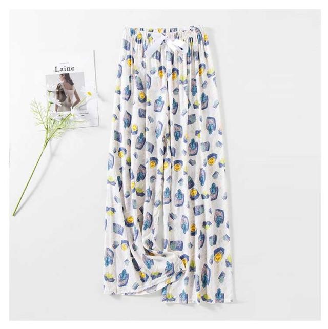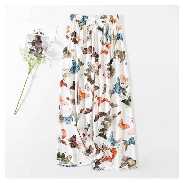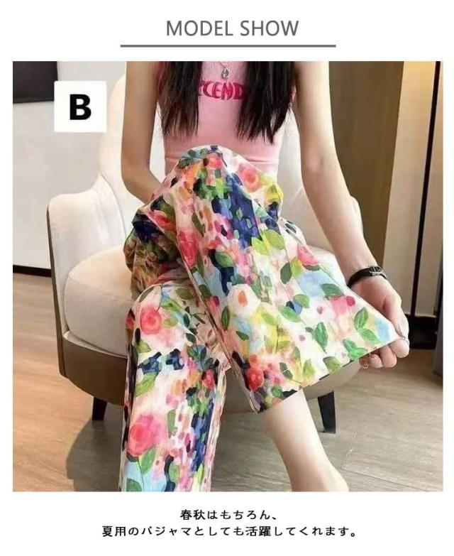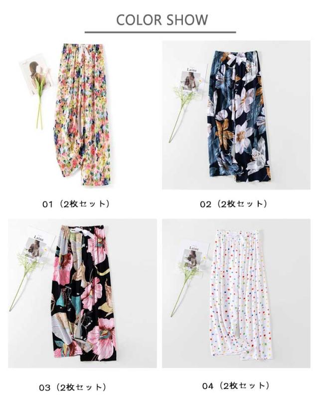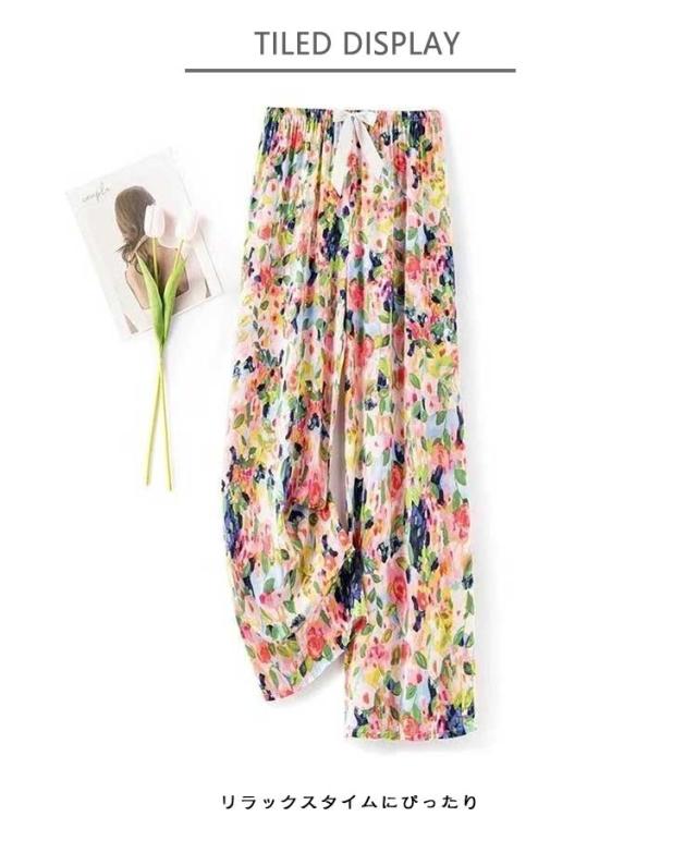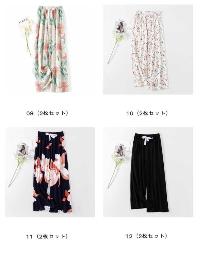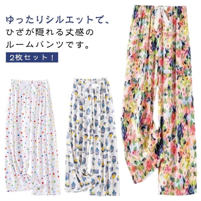 ルームパンツ レディース 総柄 ルームウェア 9分丈 涼しい とろみ サラテロパンツ 2枚セット!リラックスパンツ 九分丈 花柄 リラックス ゆったり 薄手 ステテコ 夏パンツ 部屋着 おしゃれ かわいい 婦人 パジャマ ロングパンツ 2枚セット!リラックスパンツ 春 夏 秋