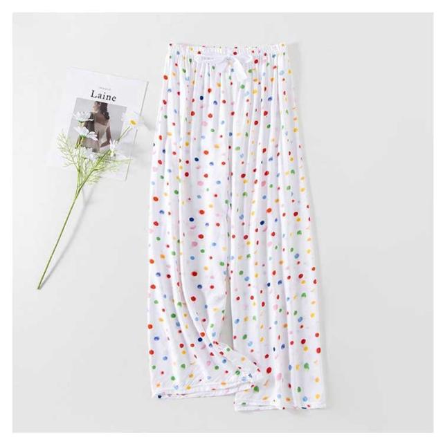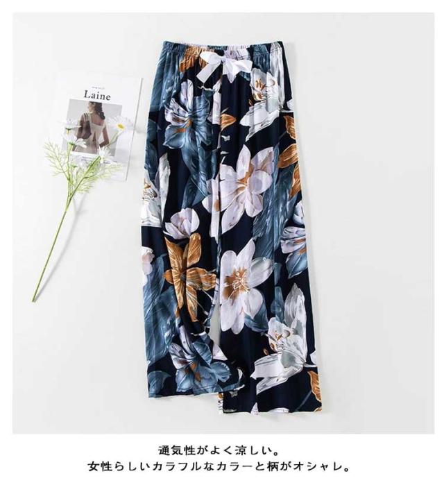| ゆったりシルエットで、ひざが隠れる丈感のルームパンツです。 春秋はもちろん、夏用のパジャマとしても活躍してくれます。 リラックスタイムにぴったり♪ 通気性がよく涼しい。女性らしいカラフルなカラーと柄がオシャレ。 | |