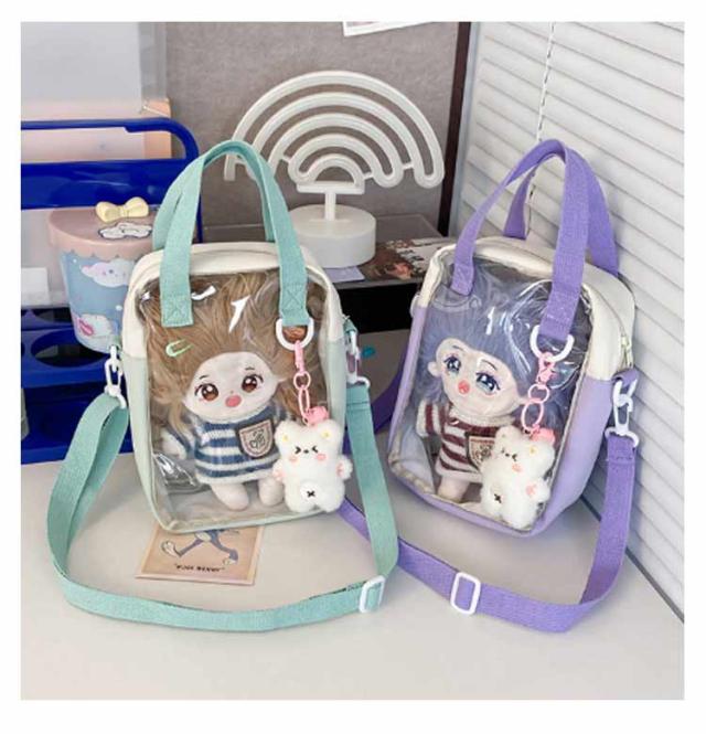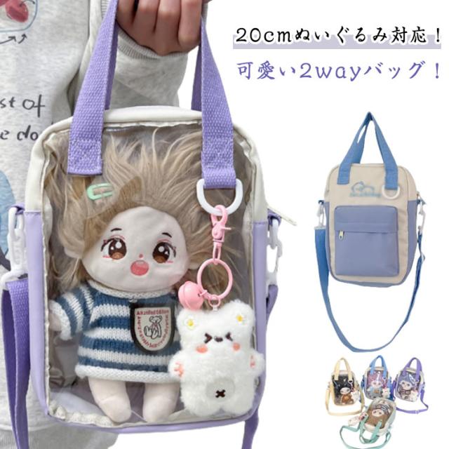 透明 クリア窓 2way 斜めかけバッグ ぬいポーチ ぬいぐるみ ポーチ コンパクト 20cm対応 推し 可愛い 活 2way バッグ ぬいぐるみポーチ ぬいぐるみ収納バッグ クリアポーチ 推し活グッズ ポーチ レディース 痛バ 推しカラー 痛バッグ ショルダー 斜めかけ ギフト