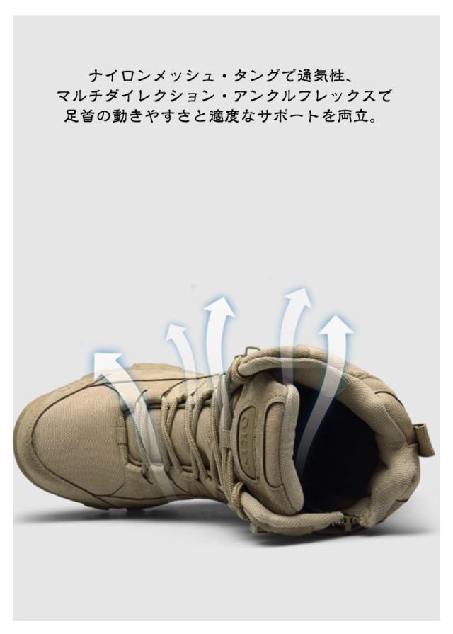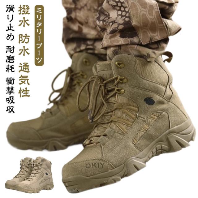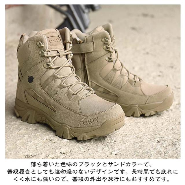 サバゲーブーツ ミリタリーブーツ ハイカット 撥水 防水 ミリタリーブーツ サイドジッパー コンバットブーツ メンズ 大きいサイズ 通気性 アウトドア トレッキングシューズ 防滑 耐磨耗 衝撃吸収 シューズ おしゃれ 山歩き