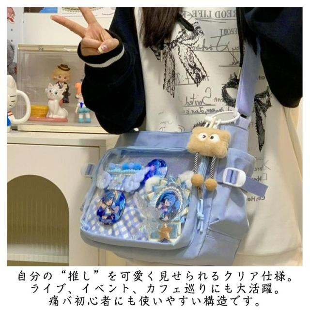 斜めがけバッグ 推し活バッグ 痛バッグ メッセンジャーバッグ 肩掛けバッグ 透明ポケット付き ショルダーバッグ 痛バ クリアバッグ 多収納バッグ レディース 大容量バッグ 推し活グッズ グッズ整理 通勤 通学 学生