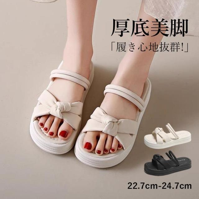 【20%超還元セレクト】サンダル レディース 夏 可愛い 厚底 つっかけ 疲れない きれいめ ビーチサンダル ソフトソール ぺたんこ フラットシューズ 女の子 リラックス感 22.5-25.0cm