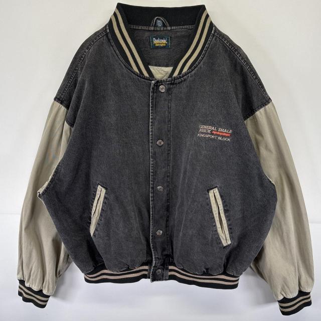 古着 Dunbrooke スタジャン デニム アワードジャケット ツートン ロゴ刺繍 大きいサイズ XXL ブラック メンズ