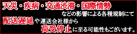 天災・天候不良や交通状況等により一部地域の配達に遅れが生じる場合がございます